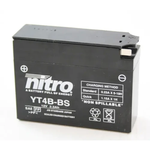Nitro YT4B-BS Batteri Vedlikeholdsfritt 12V, 2.3Ah, 113x38x87, Syreflaske, AGM